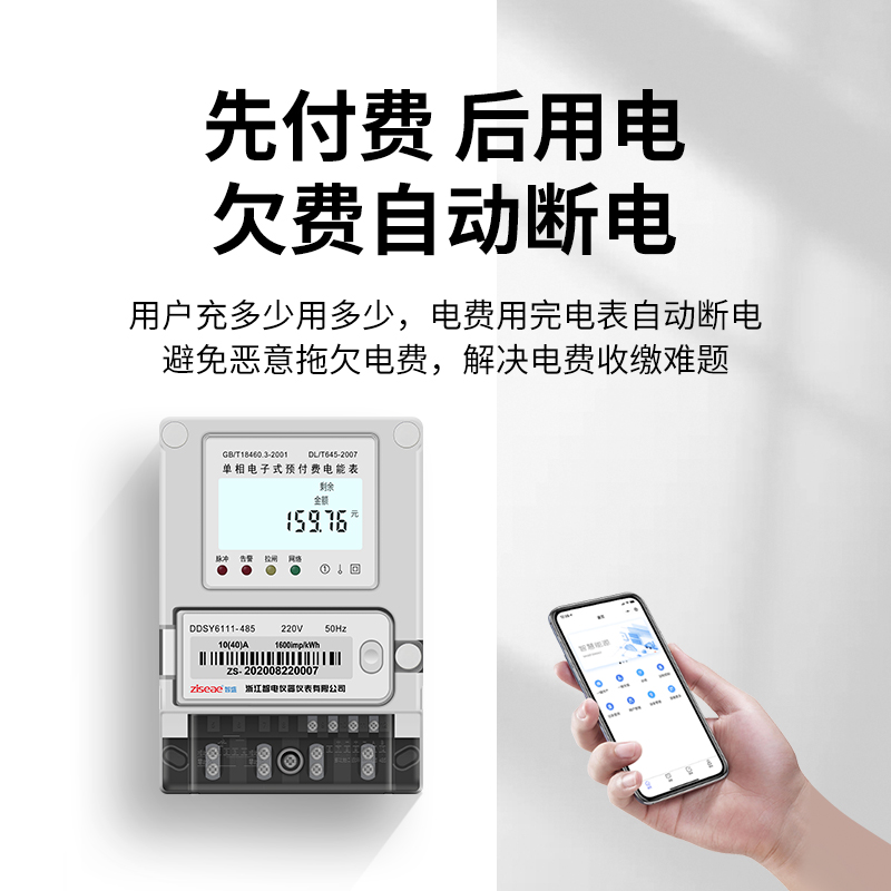 預付費電表,與常規(guī)通信裝置組網,或通過4G,NB等通信方式,將監(jiān)測數據上傳至預付費管理系統,通過微信小程序進行繳費管理.。