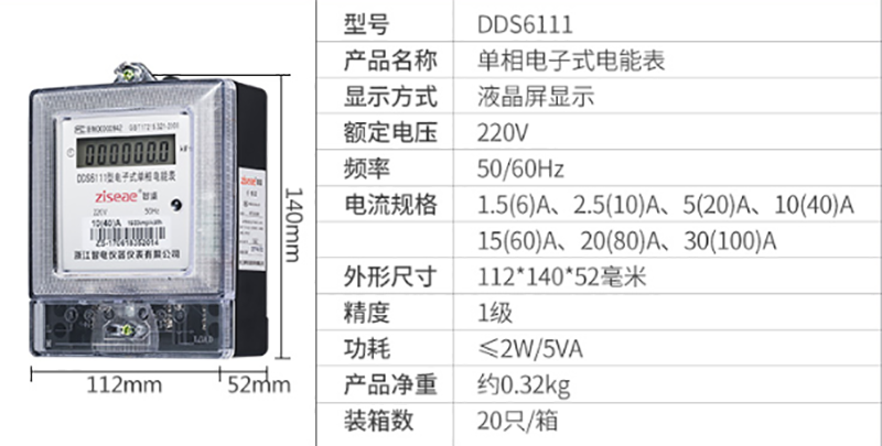 型號:DDS6111單相電表(哈型 液晶)